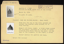 | Description: | From near the top of the wall; glazed red inside; the outside badly grayed, as if from burning. Woman's(?) head, right. A loose cloak around the shoulders, fastened by a brooch in front. A wreath, with white dots, in the hair. At the edge of the fragment, to the right, a torch. Relief contour for profile and nape. | |