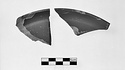 Description:   Two non-joining rim fragments. Flattish floor, low upcurved rim with internal and external angles.