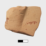 | Description: | Single fragment preserving portion of test piece, including one edge indicated by glaze (paint). Piece cut from the body and handle either of a large belly-handled amphora or krater (the former perhaps more likely?). Paint on interior and exterior thickly applied, much worn and with a tendency to flake; fired red. Interior probably decorated with vertically and horizontally intersecting lines. Traces of paint on exterior, including preserved edge. Clay body and reserved surfaces evenly fired close to reddish-yellow and pink 7.5YR 7/6-7/4. Cf. P 32375-P 32376. | |