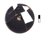 | Description: | Six joining fragments preserving three-quarters of lid. Flat top, downturned rim slightly concave on outside, small loop handle, reserved. Also reserved, interior and resting surface. Lid for a psykter (KM 2/99). Cf. Agora XII, no. 44, ca. 500-480 B.C. | |