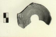 Description:   Single fragment preserving about one-half of draw-hole. Cut from base of Corinthianizing kotyle.