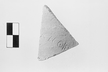 | Description: | Single triangular fragment, broken all around. Inscribed on exterior, part of the name of Xanthippos: <graphic> Dark pinkish-orange, medium-grained clay with black and white inclusions. Cf. Agora XXV, pp. 133-135. | |