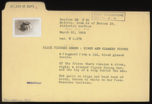 Description:   A fragment from a lid, black glazed inside. Of the frieze remains a siren, right; a cloaked figure facing her; and the tip of a wing behind the man. Red paint on wings and headband of siren; traces of white on her face. Carelesss incision.