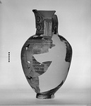 | Description: | Mended from many fragments, preserving entire profile. Half of rim, portion of neck wall and top of one handle missing. Entire base preserved. Body with many gaps, partially restored in plaster. Glaze worn in places. On neck at center, between panels, both sides have horizontal series of lozenged lines. In panels, as fill ornament, two concentric circles one above the other, with eight-pointed spokes and dots. Rim, shoulder, foot and lower wall glazed; bands on body. Tops of handles decorated with three series of horizontal bands framing an X; below, three vertical lines flanked by a wavy one. Streaky black glaze. For direct parallel, third quarter of eighth century BC, see Agora VIII, p. 30, no. 2, pl.1. Sub Dipylon. | |