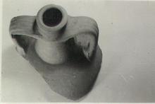 | Description: | A single piece, preserving both handles, neck and mouth, and some of the shoulder. Neck tapers toward top. The dipinto in green. The handles ribbed. On the neck: <graphic> On the shoulder: <graphic> Pinkish to buff clay; light buff slip. Unglazed. | |