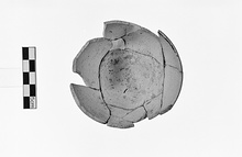 Dimensions:   Diam. (base) 0.044; Est. Diam. (rim) 0.092-0.095; P.H. 0.062