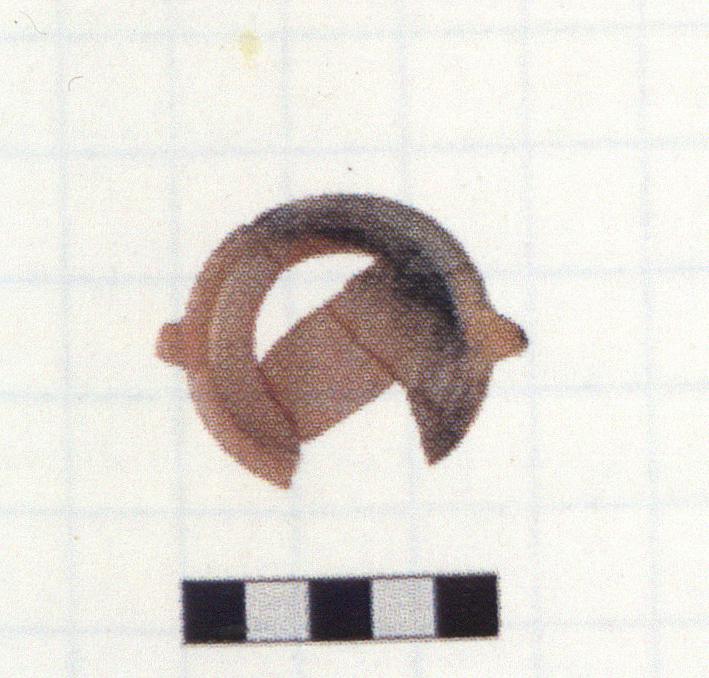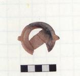 | Description: | Four joining fragments preserve most of bowl; missing some floor and a quarter of wall and rim. Flat underside with string marks and bits of extra clay. Shallow body with narrow, projecting rim, rounded on top. Narrow, vertical strap/lug handles from rim to base of wall. Burning over part of interior and exterior. Fine orange fabric. Unglazed. | |