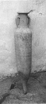 | Description: | Flat rim, slightly bent down; thick neck with two vertical handles upon it; long slender body tapering to a point at bottom. Pinkish clay. Unglazed. | |