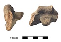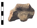 | Description: | Two fragments. a) Rim and wall. Vertical wall with slightly thickened rim. Closely-set incised lines below rim; further below, closely set incised lines in wave pattern. Vent hole pierced through wall at bottom right. b) Fragment with a support. Short, stubby lug with projection above, attached to rim. Hard, coarse cooking fabric. Light red (2.5YR 6/6), with gray surface. Many large white grits. | |