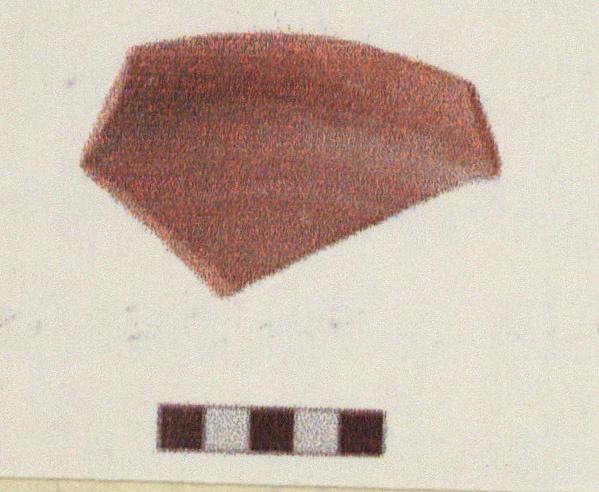 | Description: | Single fragment of rim and wall. Low sloping rim; shallow sloping floor, thickening towards missing foot. Brown clay, rather clean-breaking, purplish-brown semi-metallic slip all over, with polishing lines on interior. No decoration. Askra-Thespiai: Late Roman Ware | |