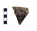 | Description: | Single wall fragment, triangular in shape, broken all around. Glaze worn. Inscribed letters, left to right, on exterior, preserving end of name and patronymic of Xanthippos: <graphic> Pink-buff clay, black slip on exterior. | |