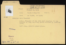 | Description: | Only a fragment of the side wall remains; coverd by long swirling petals divided by jewelled lines. Buff clay, metallic black glaze. | |