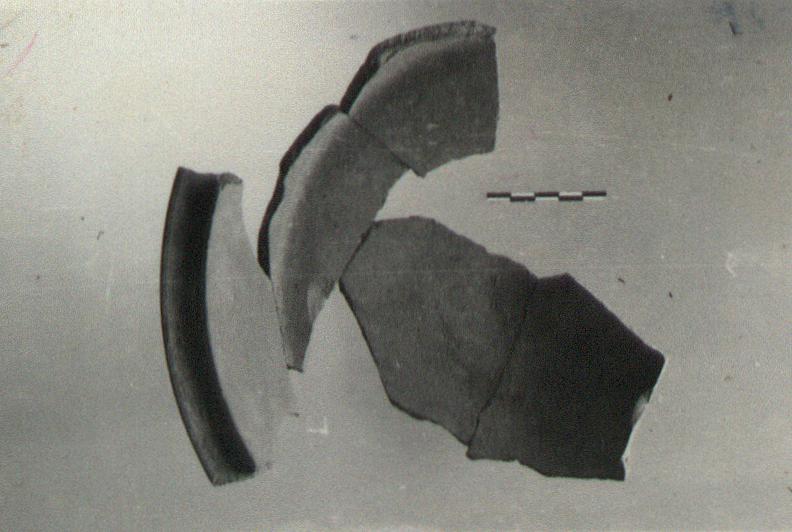 | Description: | Part of the base and side wall remains. No trace of handle. Bulging bottom; almost vertical side wall; broad flaring rim with a slight ridge around its inner edge to hold the lid. No trace of handle. Cf. Agora XXXIII, no. 669. | |
