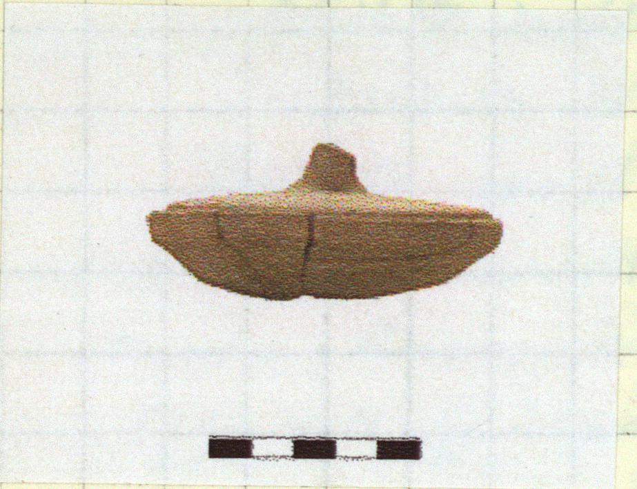 | Description: | Body mended from five fragments, center of floor and handle missing. Lid mended from six fragments, one small piece missing. Curved bottom; rim offset inside to take lid. Low lid with pinched handle. Cooking fabric. Blobs of dull purple glaze on floor. | |