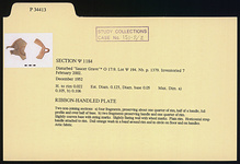 | Description: | Two non-joining sections: a) four fragments, preserving about one quarter of rim, half of a handle, full profile and over half of base. b) two fragments preserving handle and one quarter of rim. Slightly convex base with string marks. Slightly flaring wall with wheel marks. Plain rim. Horizontal strap handle attached to rim. Dull orange wash in a band around rim and in circle on floor and on handles. Attic fabric. | |