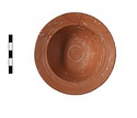 | Description: | Complete except for small gap in wall. Mended from six fragments. Small bowl with steep wall, low angular foot and broad rim. Top of rim bears sharp-cut moldings, lip slightly hooked, bearing four equidistant groups of small triangular notches along its upper edge. Two grooves on inner floor. Orange fine grained clay with slightly more reddish slip on interior and splashed on exterior. Ca. 375-400/420 A.D. African Red Slip. | |