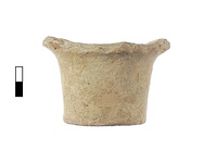 | Description: | Complete toe with small part of lower wall of body. Hollow cylindrical toe, slightly concave underside. Pale buff fabric; wide scattered mica. Compact fabric with mud-stone and glassy bits. | |