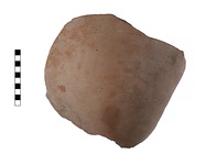 | Description: | Two large fragments (a and b) and a small mended piece make up almost complete lower body including toe. Wide, convex-sided lower body to flaring-sided disc toe with wide, flat base and small hollow in center with nub. Smooth, pale orange micaceous fabric. Dark brown resinated interior. | |