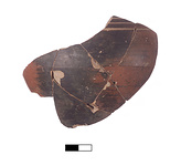 | Description: | Six joining body fragments. Body thick-walled, as P 34965 and perhaps from same vessel. Paint as P 34965, though variously fired from red to black. Preserved lower body painted solid. Portions of three thickish bands at upper break. Clay discolored due to burning; where less affected by burning close to light brown, 7.5 YR 6/4. Protogeometric. | |