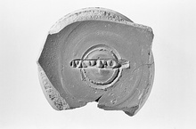 Description:   Plain ring foot. Around the center, inside, a circle incised in the soft clay. Stamped across it: ΡΛVΡΟ.