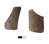 Description:   Part of a rim and wall (three joining fragments=a), and part of wall (b).