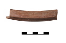 | Description: | Single fragment. Shallow groove on inside below rim; no decoration. Hard-fired; darkish red tint. 'Late Roman C', form 3 early rim. Ca. 400 A.D.? | |