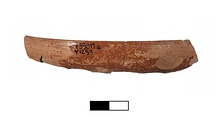 Description:   Two joining rim sherds (a), about one-quarter of floor (b-with a loose splinter). Near-complete profile. Minor spalling (all over) and flaked patches.