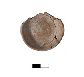 | Description: | Mended from five fragments, one-third of rim missing. Flat base with string marks, straight flaring wall. Light orange clay. | |