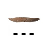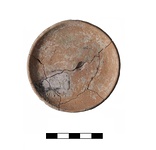 | Description: | Complete but for chip on interior surface. Mended from six fragments. Shallow saucer, slightly concave underside with string marks. Straight wall, concave near bottom. Beveled rim. Micaceous pink-orange fabric. | |