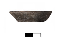 Description:   Mended from two pieces. Chipped at rim, otherwise complete. Sign of burning.