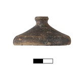 | Description: | Lekanis mended from six fragments; lid mended from three fragments, both complete. Disc foot, flat underside with string marks. Convex wall, concave under flange. Tiny rim projects slightly above flange. Lid knob offset from stem, flat on top with string marks. Black glaze on body of bowl, matte brownish-black wash on most of lid exterior. Similar to Agora XXIX, no. 1449 (P 19046). | |