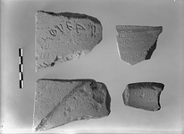 | Description: | Fragment from a large Geometric lid, decorated outside with tooth pattern. Inside, a damaged graffito: <graphic> | |