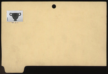Description:   Fragmentary; mended from several pieces; two small bits do not join. Small part of rim with one handle preserved. Flaring base; scraped, colored grooves round top and projecting lower part. Restored in plaster