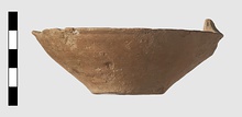 | Description: | Nearly complete, two small fragments mended at rim. Chipped along rim, handle missing. Surface and glaze worn and spalling. Small flat base, shallow open saucer, slightly flaring rim. Remains of single vertical handle attached at rim. Thin reddish-orange wash/glaze on interior. Where surface preserved, possible traces of burnishing. Pinkish-orange micaceous fabric. Mycenaean LH IIIA. Cf. Agora XIII, no. XXIII-6. (P 23581). Cf. Hesperia 87 (2018), p. 663, n. 148. | |