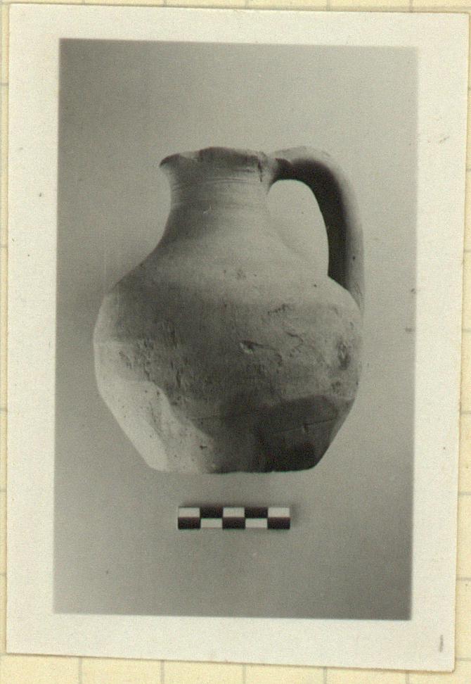 | Description: | Complete. Roughly made; the handle lightly ribbed; trefoil mouth; flat bottom. Red clay. Unglazed. ADDENDA The evidence of the graves gives an early Christian date, ca. 7th to 9th c. A.D. | |