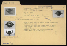 | Description: | Part of base broken away; minor fractures; otherwise intact. Vertical flutings on lower half of body. Flat topped, spurred handles. Stocky conical foot. Unevenly fired, red through brown to black, the red chiefly below. | |