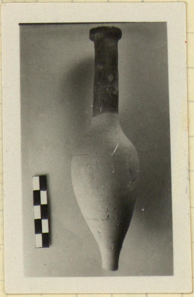 | Description: | The foot broken off. Buff clay, the neck covered with thin, reddish glaze. | |