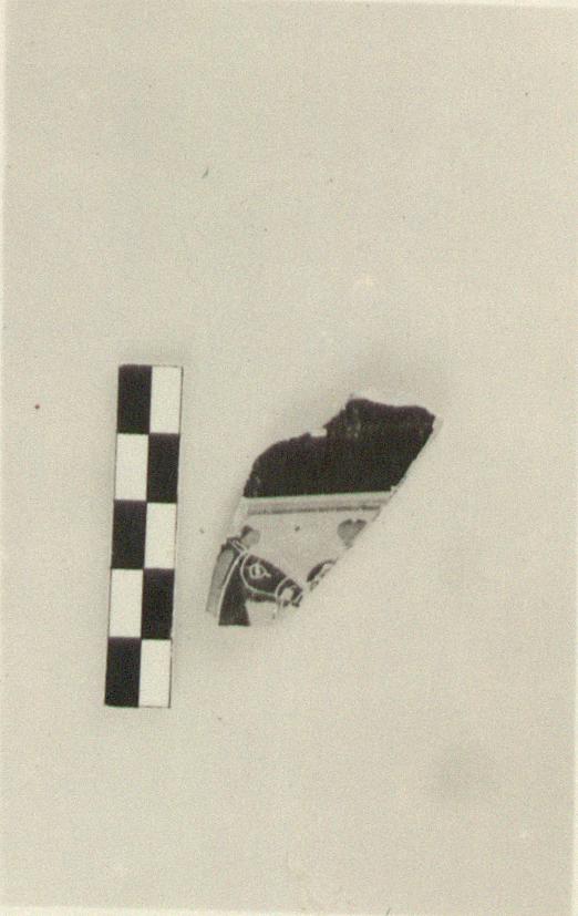 | Description: | Broken away close to lip. Upper part of handle zone preserved. Head of a horse, right. Before him, the head and shoulder of a man(?). Red for mane and hair. Incision. Interior, black glaze, slightly metallic. Other fragments, undecorated, possibly from this cup retained in box. | |