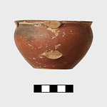 | Description: | A deep cup with a single handle, missing. Red glaze inside and out, with reserved circle inside. | |