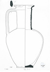 | Description: | Mended from many fragments; considerable portions still missing. Restored in plaster. Upward swelling body; cylindrical neck with handle ridge. Flat offset base. Salmon-red clay full of fine particles of mica; remains of cream slip. Thin fabric. | |