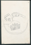 Description:   Rim and most of the side wall missing. The medallion is centered with a 6-petalled rosette, around which are four overlapping rows of ribbed leaves. Goats rampant about kraters in the frieze. In the field are flying Erotes and birds, long-bearded masks and clusters of grapes. The upper zone is a raised band with a line of leaves(?) above.