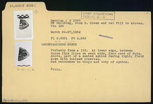 | Description: | Probably from a lid. At lower edge, between three fine lines on each side, four rows of dots. Above, part of a seated sphinx facing right; field sown with incised rosettes. Red retouches on wings and body of sphinx. Attic. | |