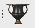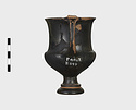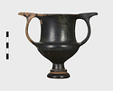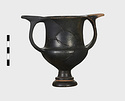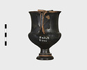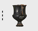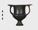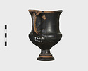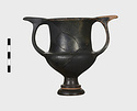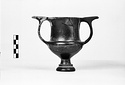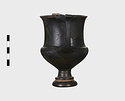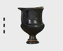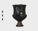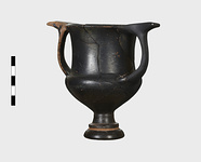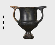 | Description: | Missing: one vertical, flat-topped handle and fragments of body. Rim more out-turned than P 4411, inside and out, worn on handle. Reserved as P 4411. Restored in plaster. ADDENDA P 4411 and P 4410: Reserved band on and under base. | |