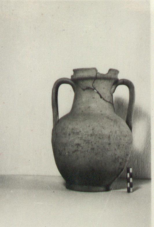 Pinkish buff clay, gritty and slightly micaceous. Light buff slip. Unglazed.