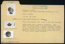 | References: | Publication: Agora XXIX Publication Page: Agora 29.1, s. 392, p. 353 Publication Page: Agora 29.1, s. 563, p. 524 Image: 2012.77.0770 (90-13-9a) Image: 2012.77.1447 (90-34-36) Object: Agora XXIX, no. 1147 Card: P 4525 |