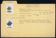 | Context: | 2nd. layer, red sand and tiles, 6th. to 5th. c. B' building fills, B- fill to north. | |