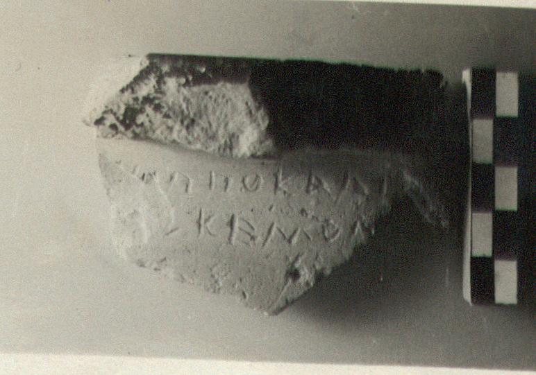 | Description: | From a large semi-glazed krater. Black glaze inside and on rim. Inscribed outside, below the rim <graphic> | |