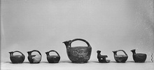 | Description: | Mended from three pieces. Complete save for small piece of rim. Ring base reserved; otherwise entirely covered with black glaze, badly peeled in places. Clay pink to gray. | |