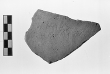 | Description: | From a coarse unglazed pot, red clay. The inscription lightly scratched on the outside. <graphic> | |