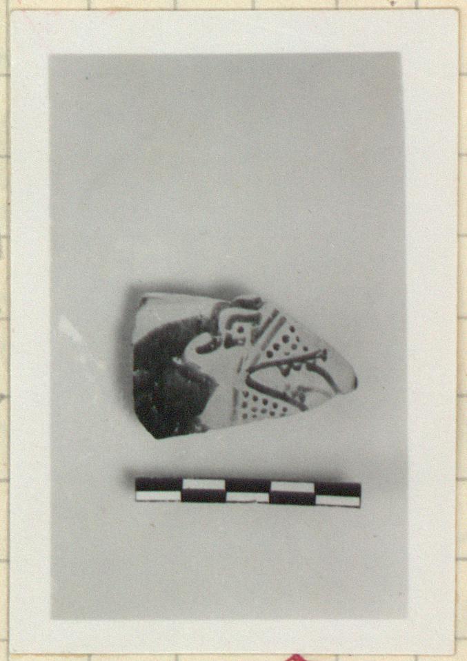 | Context: | Early earth fill under road. 36-40/road test cut. Additional fragments from N.E. corner of cemetery, layer II. | |